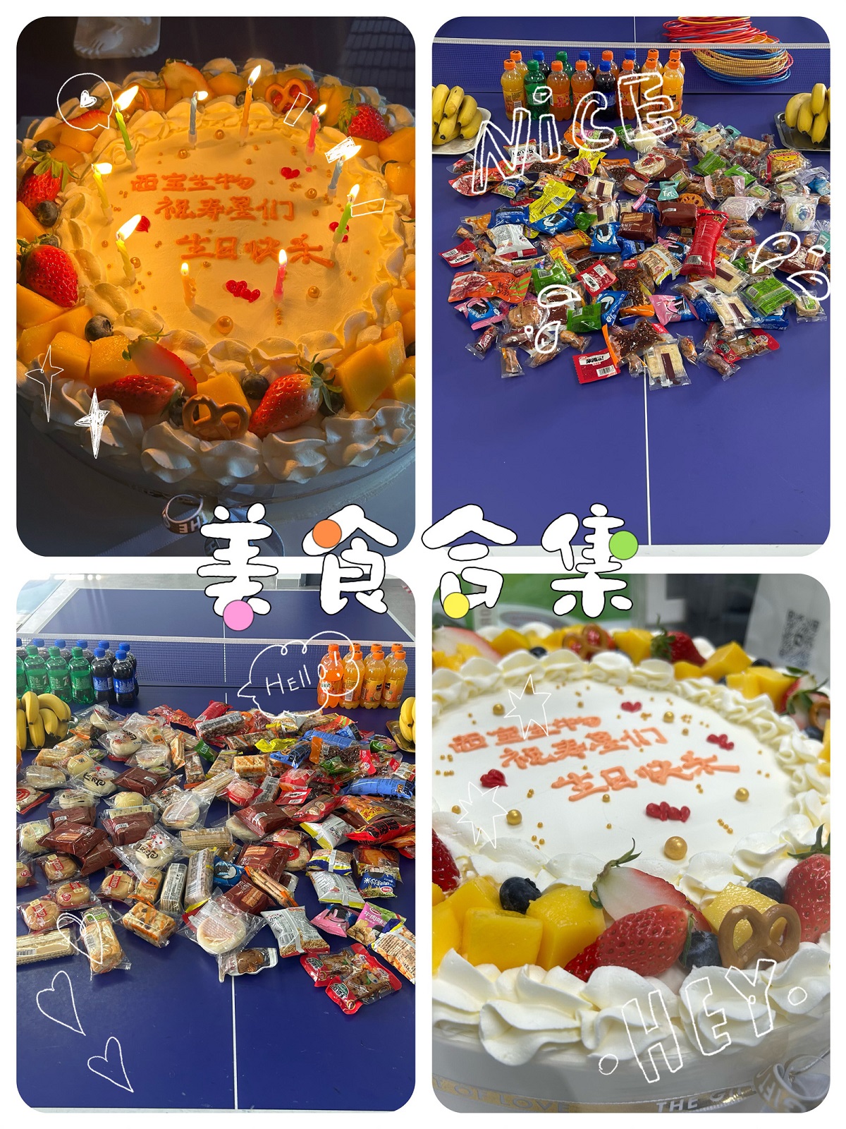 生日會現(xiàn)場,公司為大伙準(zhǔn)備了琳瑯滿目的零食、飲料、新鮮水果,還有誘人的生日蛋糕。壽星們圍聚蛋糕旁,在全場溫馨的祝福歌聲中,一同許下美好的生日愿望,隨后在眾人的歡呼聲里吹滅蠟燭,共同分享這份甜蜜,感受集體慶生的溫暖。