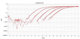 本試劑盒線性范圍為:300pg/μL-0.03pg/μL;重復性好,擴增效率高;檢測值偏差<15%。