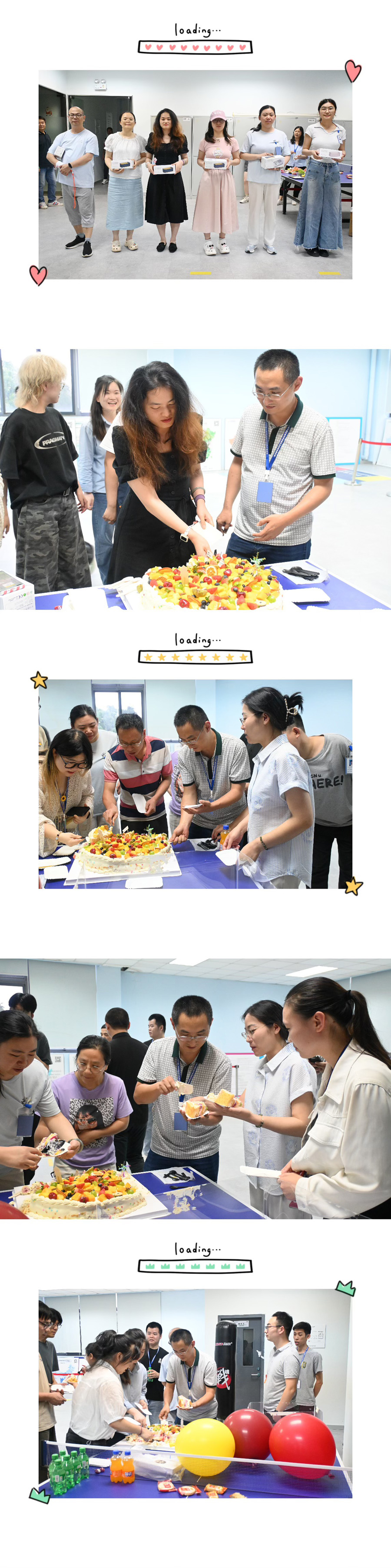 踏入活動現(xiàn)場,精心布置的空間瞬間讓人感受到濃郁的溫馨氛圍。長桌變身「快樂補給站」,琳瑯滿目的美食、沁爽的飲品與新鮮的水果有序擺放,宛如一幅誘人的生活畫卷;中心位置,承載著美好祝愿的生日蛋糕熠熠生輝,儀式感撲面而來。不僅滿足了員工的味蕾,更傳遞出企業(yè)對員工細(xì)致入微的關(guān)懷。
