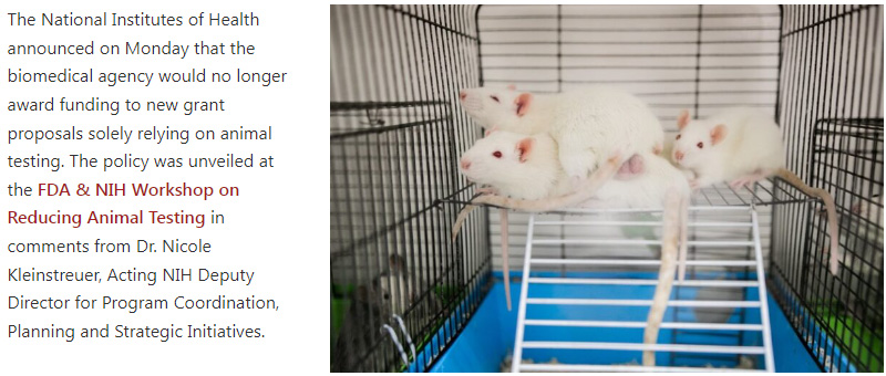 今年七月,美國(guó)國(guó)立衛(wèi)生研究院(NIH)在與美國(guó)食品藥品監(jiān)督管理局(FDA)聯(lián)合舉辦的研討會(huì)上宣布了一項(xiàng)歷史性決策:不再資助僅依賴(lài)動(dòng)物試驗(yàn)的新研究項(xiàng)目,所有新的NIH資助機(jī)會(huì)都應(yīng)納入新方法的考量。這一決策標(biāo)志著跨越近一個(gè)世紀(jì)的動(dòng)物試驗(yàn)主導(dǎo)時(shí)代迎來(lái)終結(jié)。
