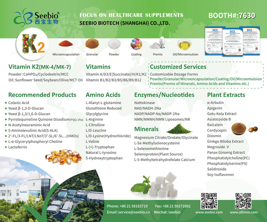 這不僅是新品的璀璨舞臺,更是全球產(chǎn)業(yè)鏈精英對話的思想場域。西寶生物深耕原料創(chuàng)新二十余載,此次攜產(chǎn)品服務(wù)與前瞻布局亮相,期待在展位7630與您相遇。以創(chuàng)新原料為橋,讓合作的星火燎原,攜手叩開全球市場新大門,共譜行業(yè)發(fā)展的恢弘篇章。