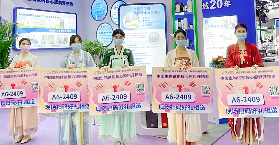 西寶生物自主研發(fā)的優(yōu)質(zhì)核心原料產(chǎn)品,廣泛應用于體外診斷(生化、酶免/發(fā)光、分子診斷、膠體金層析、熒光層析等平臺)、生物制藥、疫苗研發(fā)生產(chǎn)及科研領(lǐng)域。此次展會,西寶生物重點展示了水解白蛋白、酶解深水皮魚明膠和分子酶系列等新品,引起了客戶的濃厚興趣。