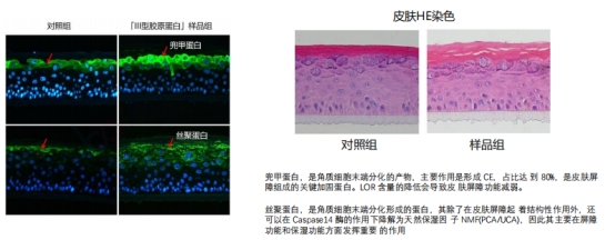 可促進(jìn)角質(zhì)層顯著增厚,增強皮膚屏障功能,促進(jìn)兜甲蛋白,絲聚蛋白的表達(dá)。
