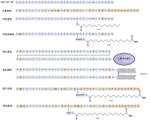 圖2,部分GLP-1RA的序列信息