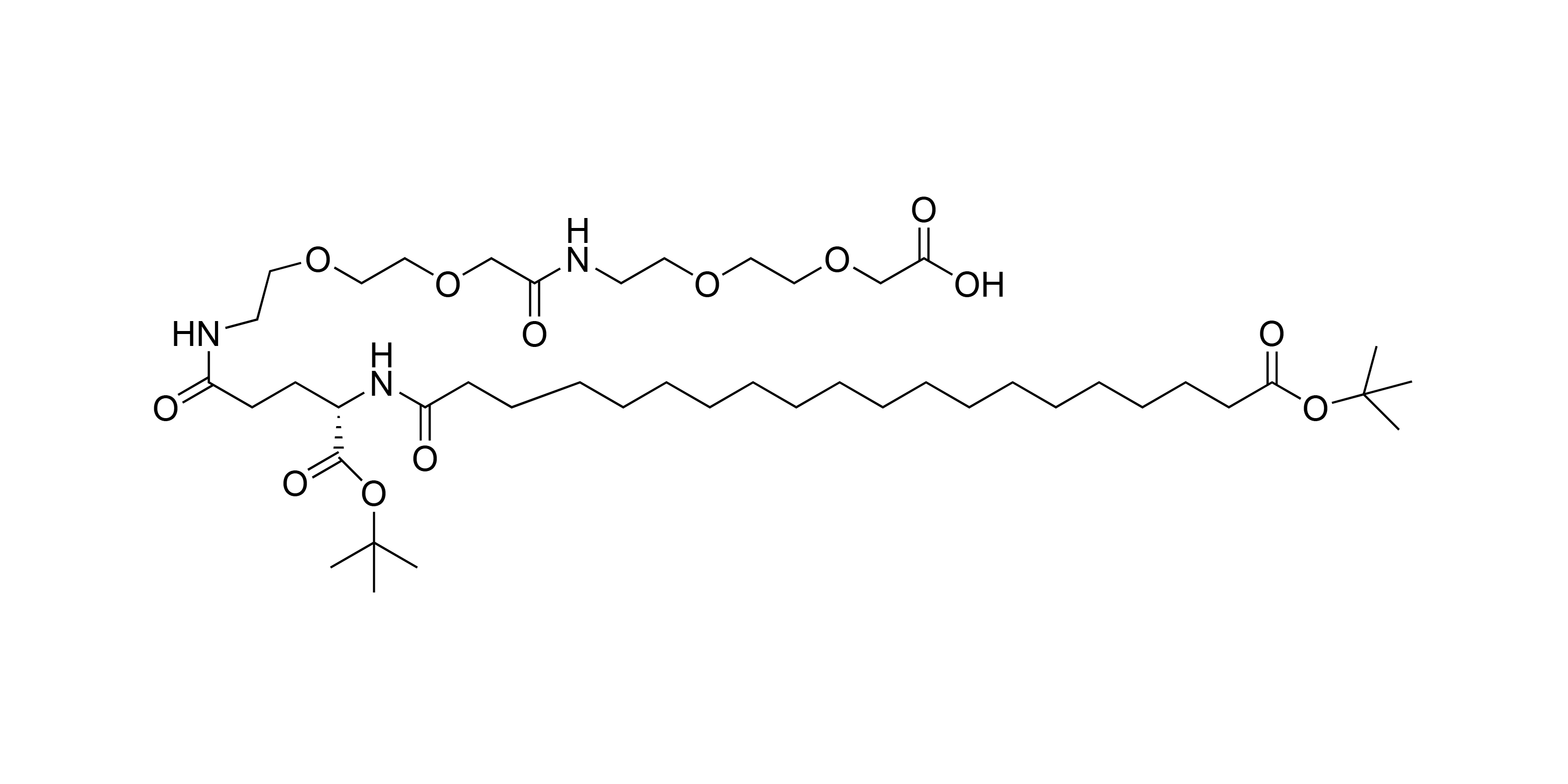 - 別名:1188328-37-1,索瑪魯肽側(cè)鏈但16個碳多兩個中間是18個CH2;C20脂肪酸側(cè)鏈;(S)-22-(叔丁氧羰基)-45,45-二甲基-10,19,24,43-四氧代-3,6,12,15,44-五氧雜-9,18,23-三氮雜四十六烷酸