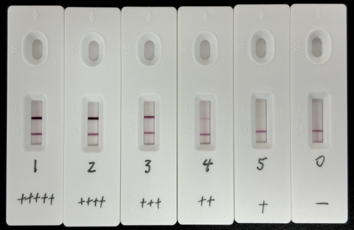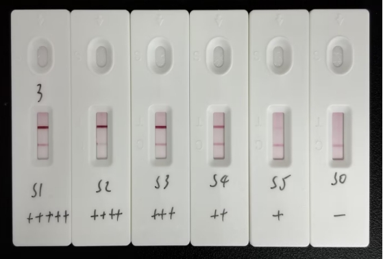 2.1.1 抗體配對組合1:便隱血(FOB)單抗(貨號:EKY0069G)標(biāo)記膠體金+便隱血(FOB)單抗(貨號:EKY0069H)劃膜;